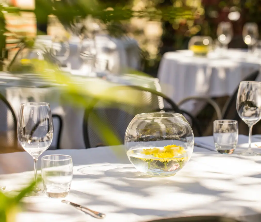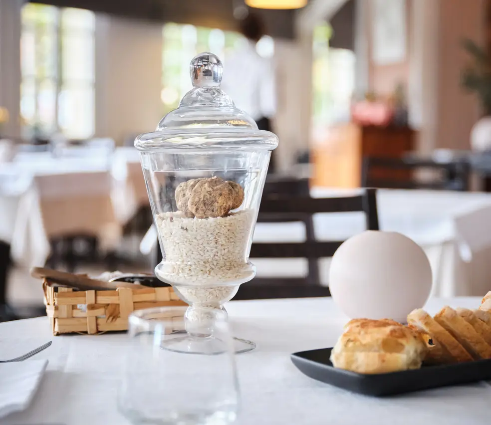 The restaurant has 2 rooms with a warm and welcoming atmosphere, the ideal place to organise all kinds of celebrations from weddings to business lunches, romantic dinners or with friends. During the summer period it enjoys a terrace surrounded by greenery.